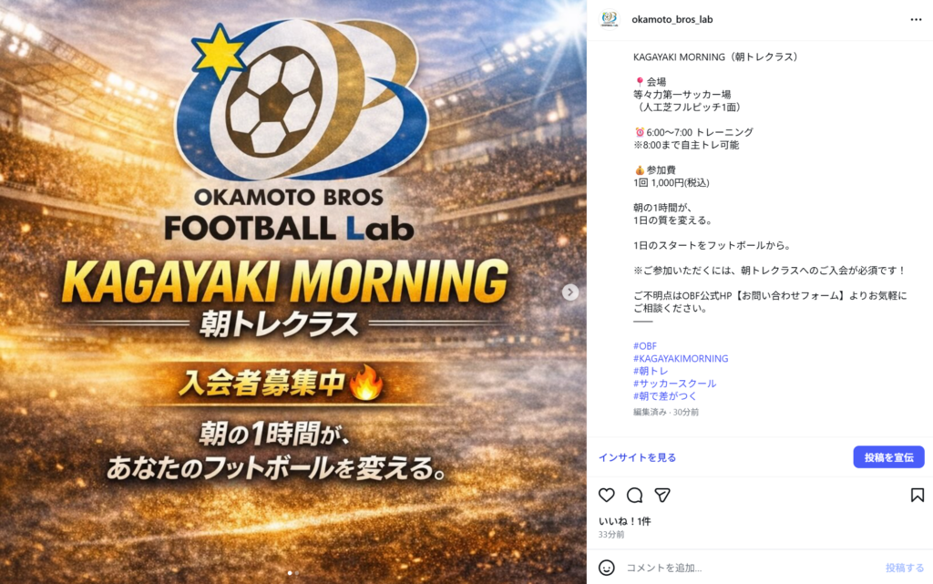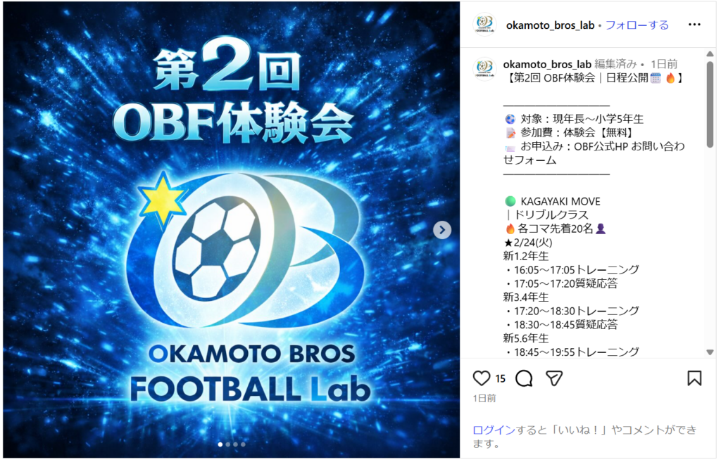 日々のちょっとした意識の積み重ねで、サッカーはどんどん上手くなります!上手くなればなるほどサッカーは楽しくなります!そんな細かい意識や、大事なことを教えてくれるOKAMOTO BROS. Football Lab(OBF)で成長していってください!いつかみんなとサッカーできることを楽しみにしています!